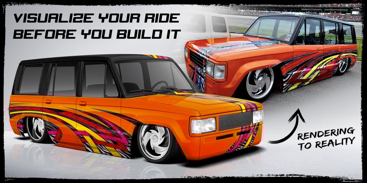 Fast forward to today at the age of 34, I've continued to sharpen my skills and expand my abilities beyond vehicle renderings into other areas such as logos, websites, printed marketing material, photo, and video. My client base has ranged from your "average Joe" building a vehicle in his garage, to custom shops building vehicles for their own clients, to corporations such as Rockster Energy building vehicles for promotion and events like SEMA. Whether it be a big or small project, I believe that when you do something you enjoy you put more effort and pride into it. There is no big team behind the scenes here, just a dedicated designer who is multifaceted to offer a personable experience with quality services and products at affordable rates.